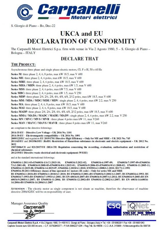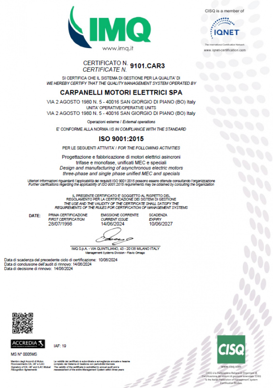 The Carpanelli Motori Elettrici S.p.A. is specialized in design and processing of non-standard products, tailored for the particular needs of the customer.